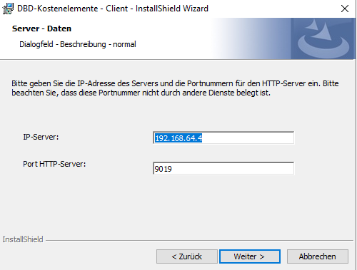 Dort bei IP-Server: 192.168.64.4 eintragen und auf Weiter bis die Installation beendet ist.