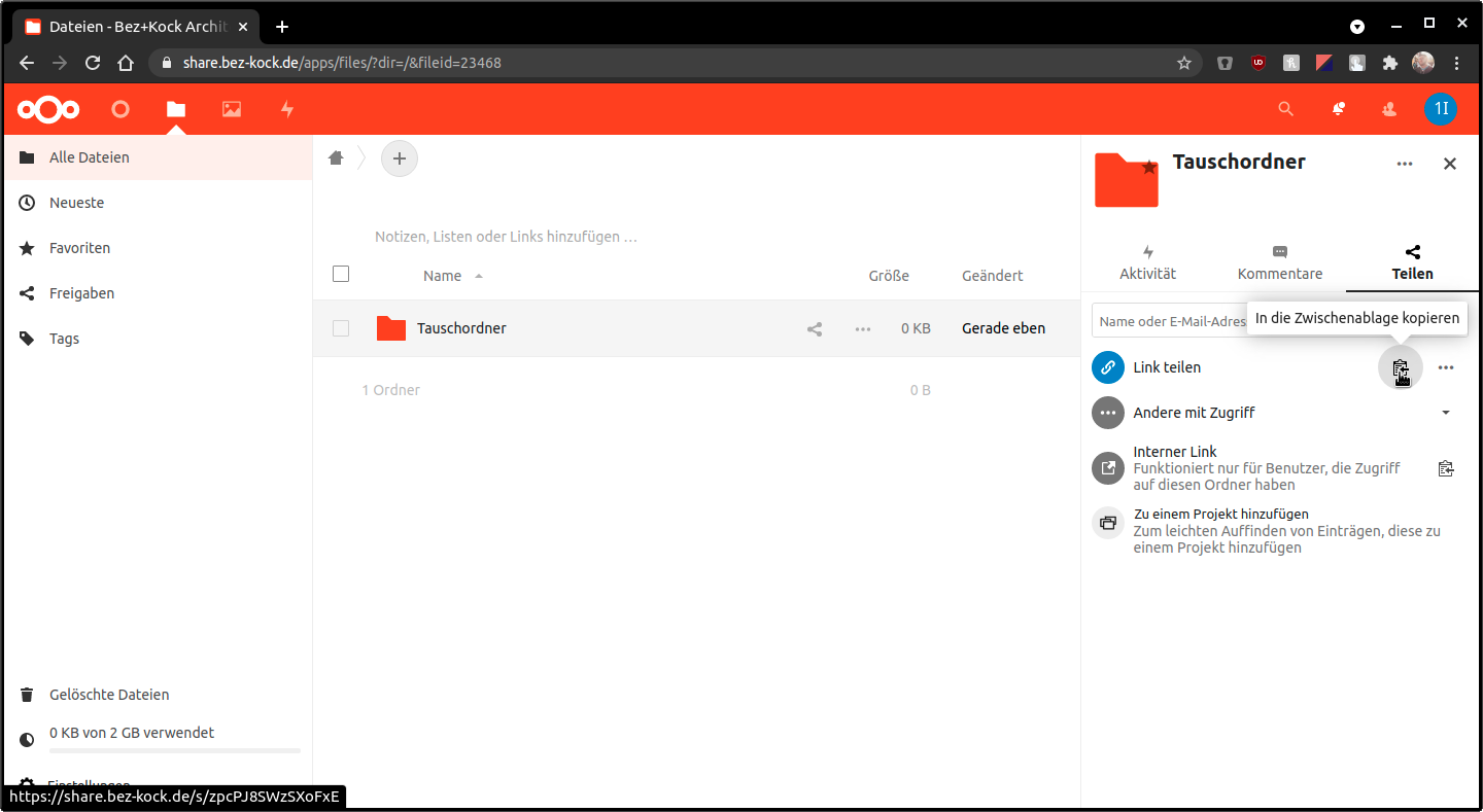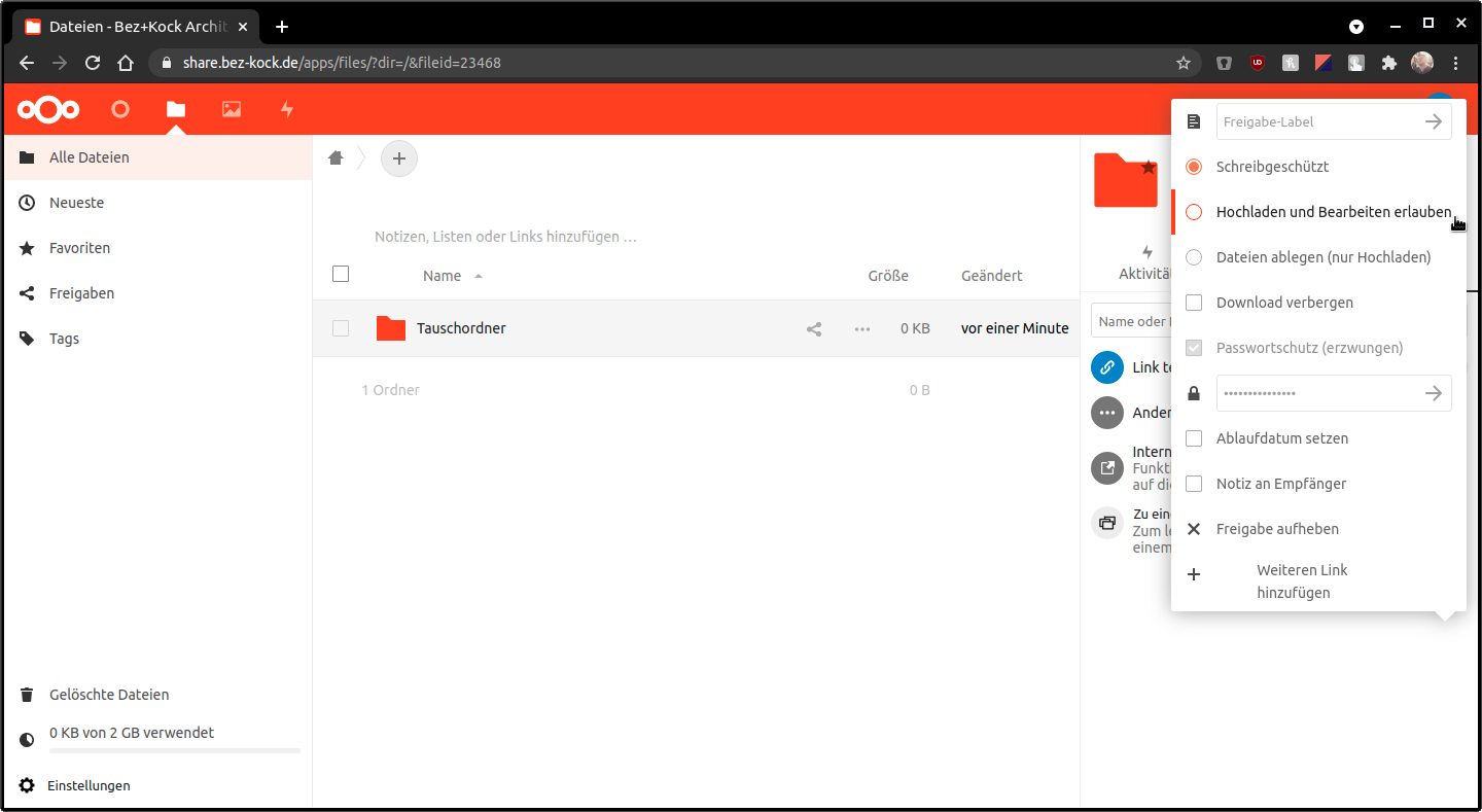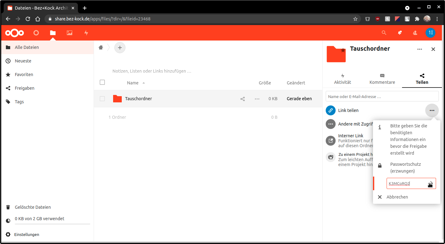 - Diesen neu erstellen Ordner teilt man dann manuell mit einem Link und einem Passwort.