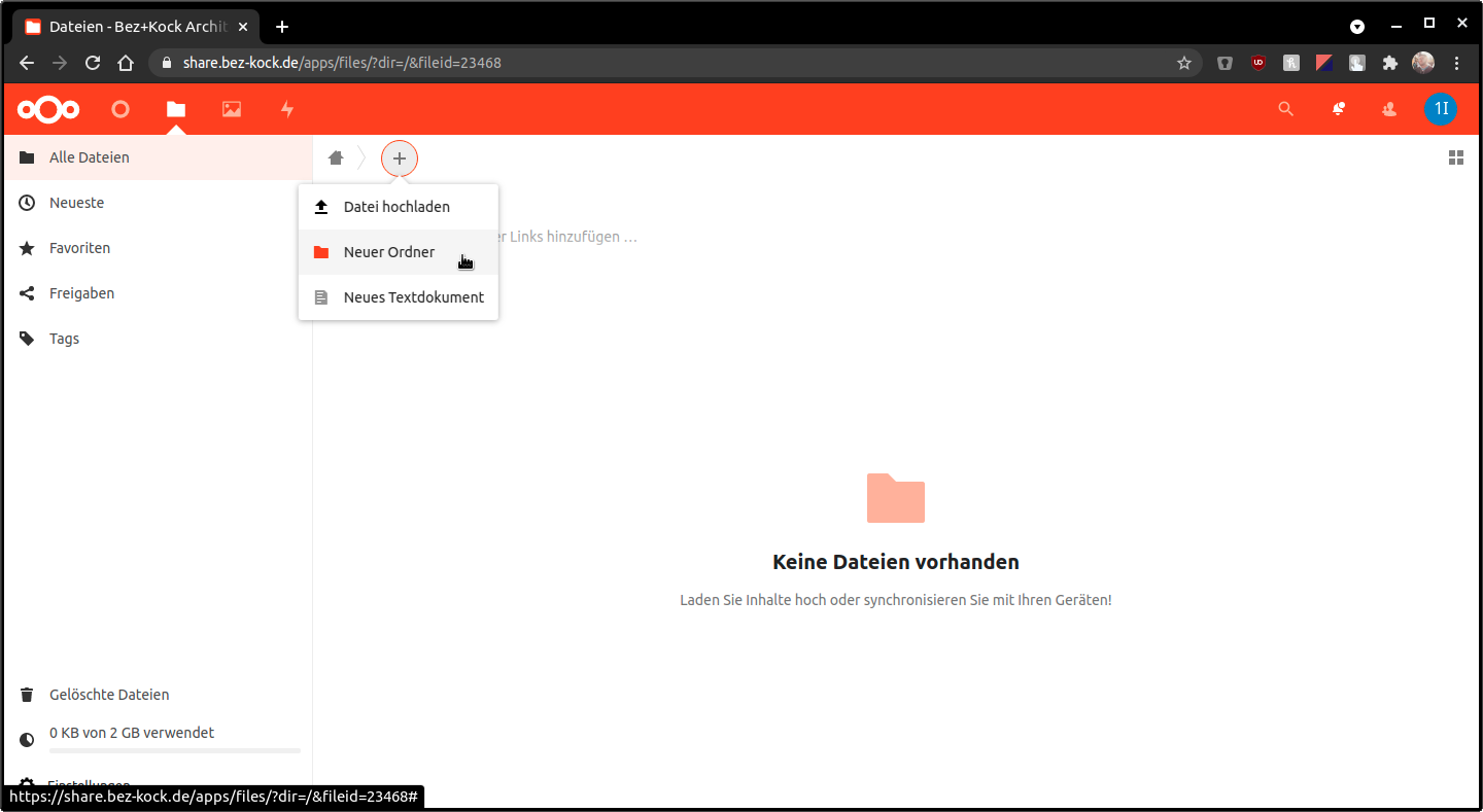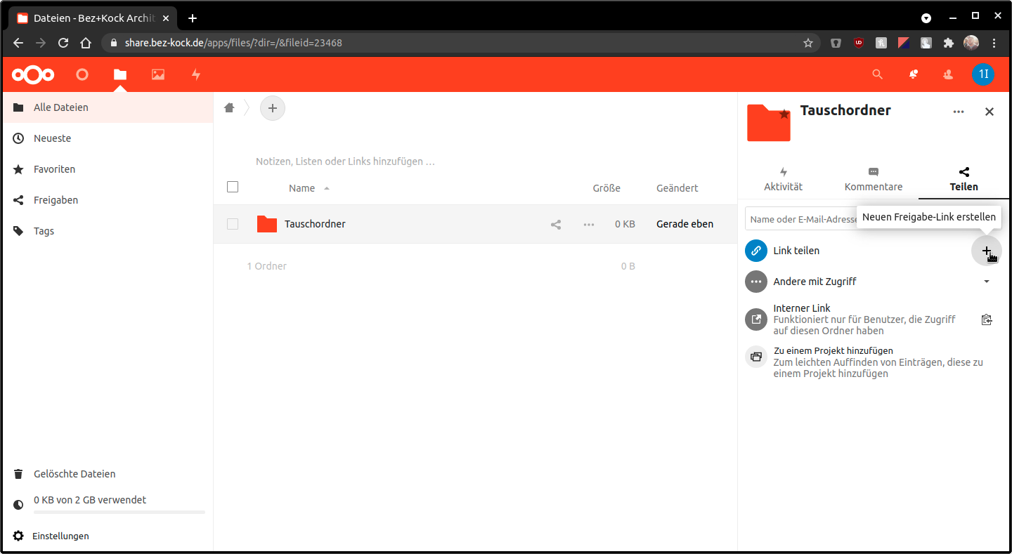 - Um einen Tauschordner zu erstellen, in dem auch Externe Dateien oder Ordner hochladen können, muss erst ein Ordner erstellt oder hochgeladen werden.