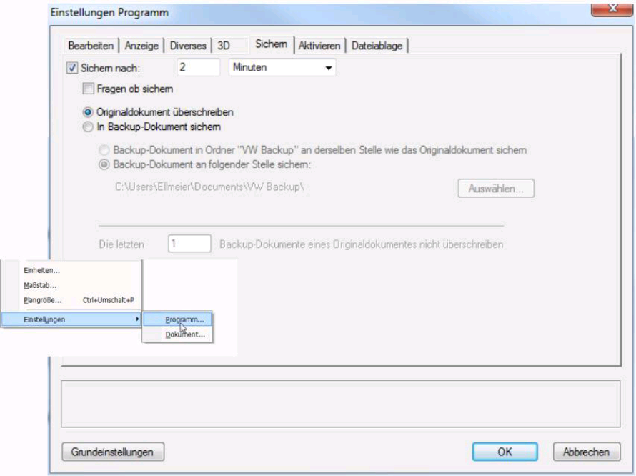 Vectorworks Backup Ordner definieren und richtig einstellen